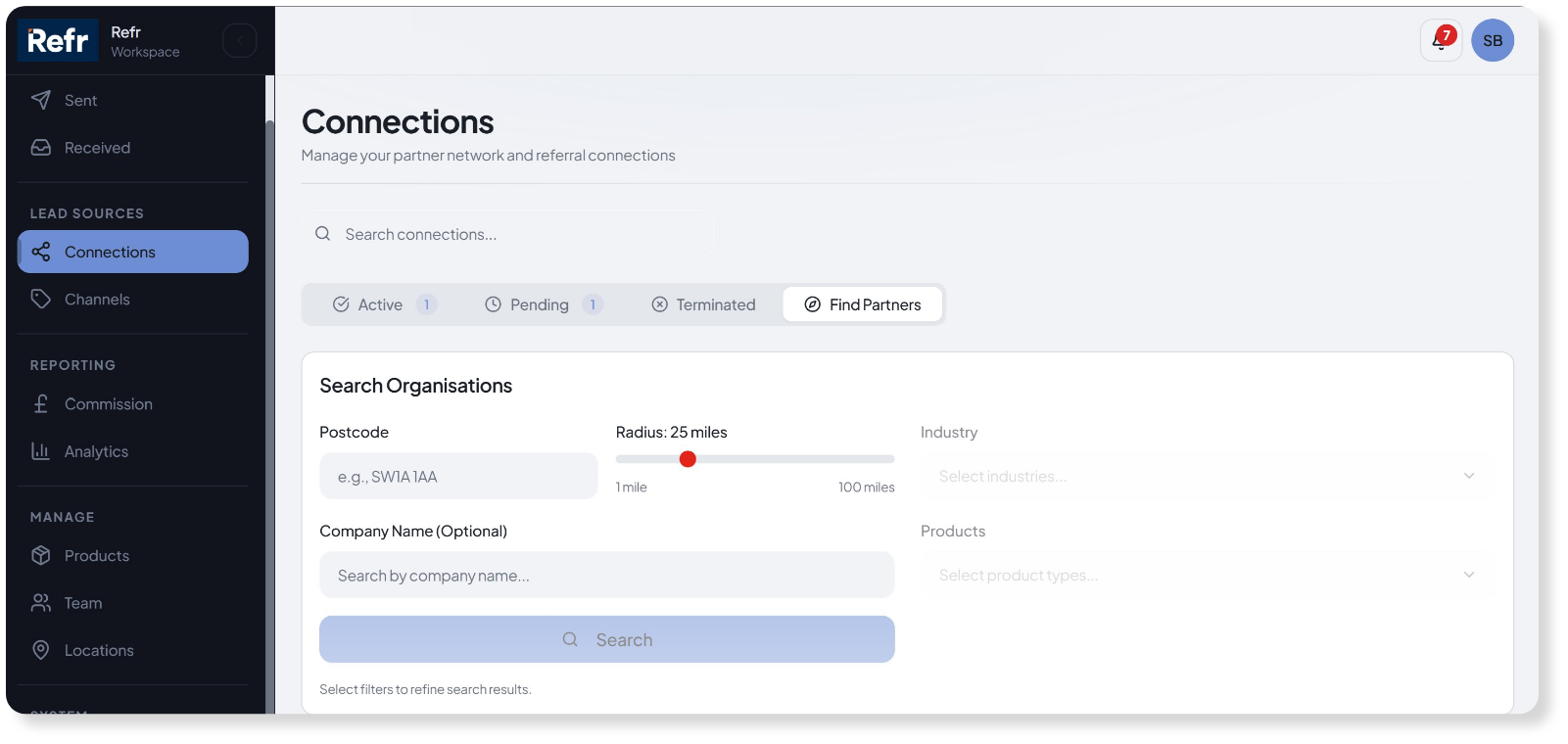 Manage partner networks and track referral pipelines.